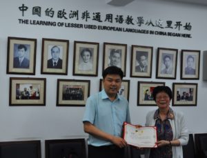 会议结束前,赵刚经理还代表公司,向文秋芳教授颁发了《欧洲语言文化研究》编委会委员聘书。