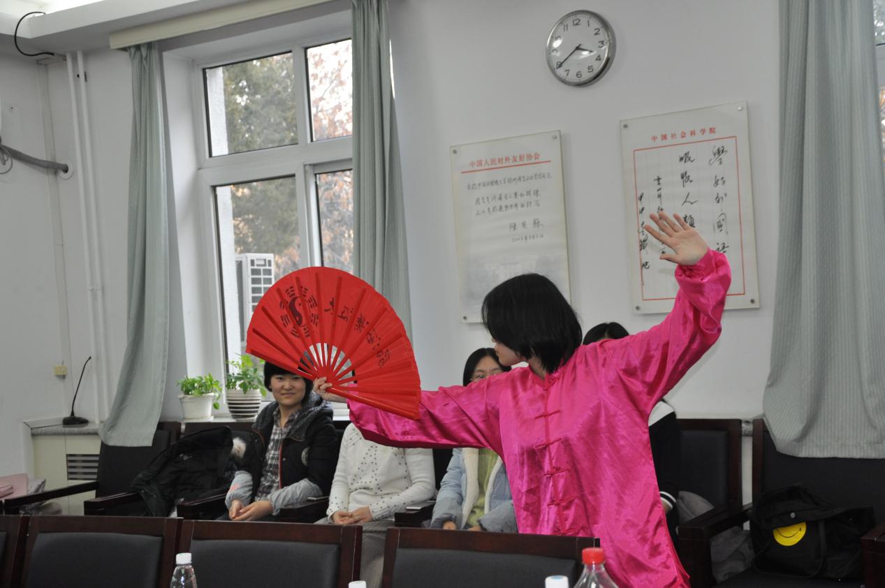 接着,同学们演唱了保加利亚歌曲《我的美丽森林》和《高高的蓝蓝的山》,优美的旋律中蕴含着同学们对于保加利亚语的热爱,令保加利亚客人动容。为了展示中华文化的博大精深,2017级的陈悦同学和郑赫雯同学分别表演了中文歌曲《红豆》和太极拳,让客人感受到了丰富的中国文化。