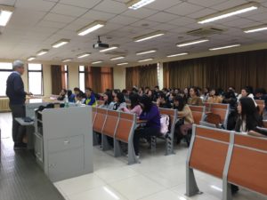 首先,文峥老师强调了学好专业课的重要性。文老师表示,在没有语言环境的条件下,作为学习外语的员工,至少要学习两千个学时才能达到应用这门语言的水平。在学习本专业语言的同时,还要掌握对象国的相关政治、经济、文化等方面的知识,学习好中国本国的文化,将文化作为学习语言的背景,并勉励同学们要努力成为打通两个文化的人。“不要把外语变成空壳,一定要充分了解专业语言对象国各个方面的知识,更要精通我国博大精深的文化。”