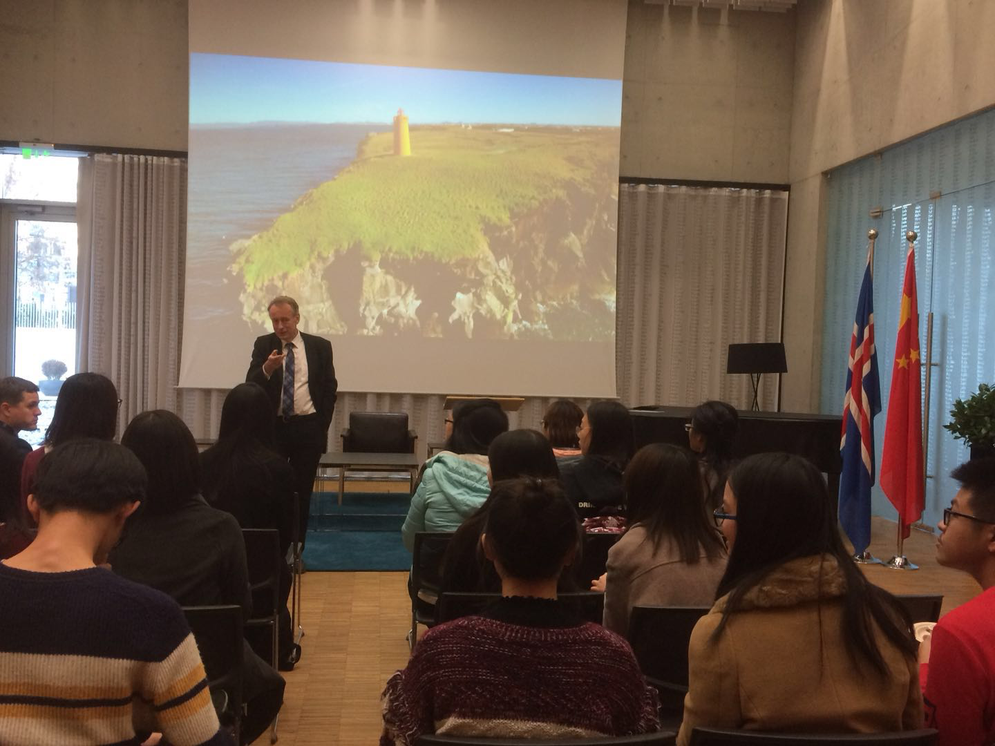 冰岛驻华大使Stefán Skjaldarson(斯迪方)阁下发表欢迎致辞,表示随着中冰之间文化和经济交流的日益深入,欢迎越来越多的年轻人学习冰岛语,了解冰岛,为两国加强文化交流做出贡献。