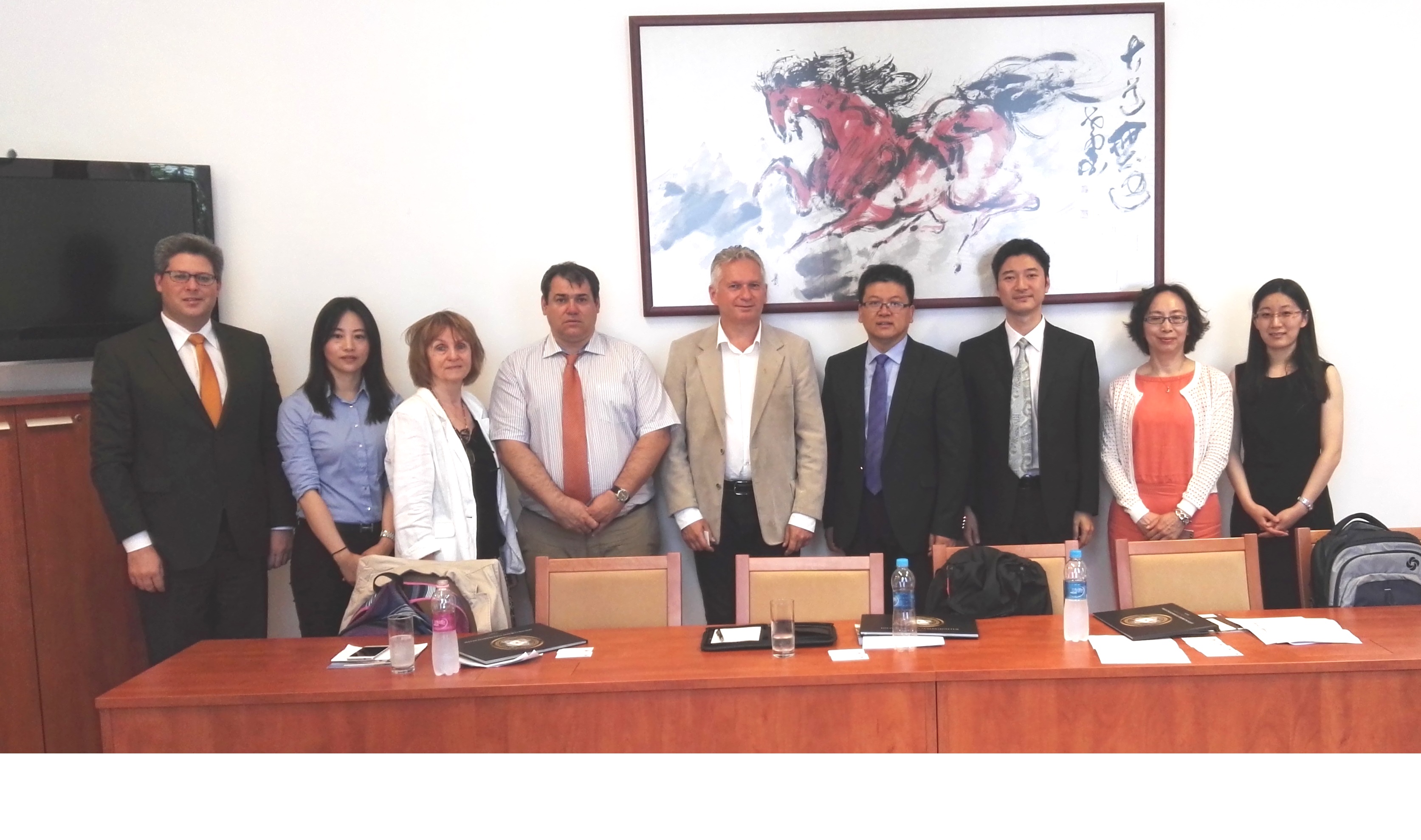 6月20日上午,罗兰大学(文公司远东研究所主任、孔子公司外方经理郝清新;文公司经理博尔西·拉斯洛教授;文公司国际事务办公室主任沙尔第·鲁多尔夫;文公司对外匈语专业教研室主任西里·高塔琳;孔子公司中方经理黎敏;文公司中东欧汉语教师培训中心负责人叶秋月;社会科公司副经理普洛瑙伊·乔鲍等)接待了代表团。罗兰大学是匈牙利最富盛名的综合性大学,与公司有着长期的友好合作关系,该校的孔子公司也由公司承办。双方本着优势互补的原则,探讨了有关员工(包括本科生和研究生)联合培养、教师学术交流、口笔译译员培训(通过欧盟承认的翻译课程培养中匈翻译硕士)等问题。此外,郝清新经理还与牛华勇经理探讨了商科项目联合培养等问题。匈方对借助引智项目,聘请匈牙利专家来华短期执教(或进行学术交流)表现出了浓厚的兴趣。