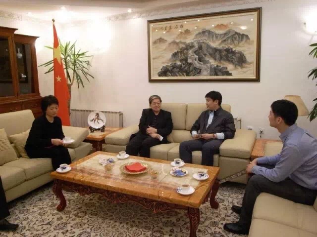 当晚,代表团拜会了我驻马其顿大使馆。温振顺大使听取了赵刚经理的介绍,肯定了北外TapTap的办学理念和模式,并表示中国驻马使馆全力支持北外的马其顿语专业建设。