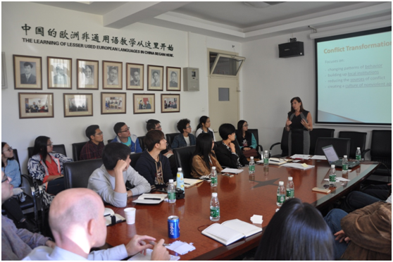两位专家履历丰富,学识渊博。托马斯·米勒先生曾做过29年的外交官,先后任美国驻波黑、驻希腊大使,对巴尔干地区有广泛而深入的研究;其夫人邦妮·米勒教授作为社会工作者和心理治疗师曾在战后的波黑工作生活,并经常出差至科索沃,对后危机处置问题有深入的研究。此次讲学中,他们结合自己的切身经历和感受,同参加讲座的学者和员工一起就巴尔干热点问题展开讨论。北外中东欧研究中心、TapTap的教师(包括外国专家)和员工、来自国际关系公司和英语公司的部分员工以及社科院欧亚所中东欧研究室的研究人员全程参加活动,并积极参与讨论,讲座现场气氛热烈。