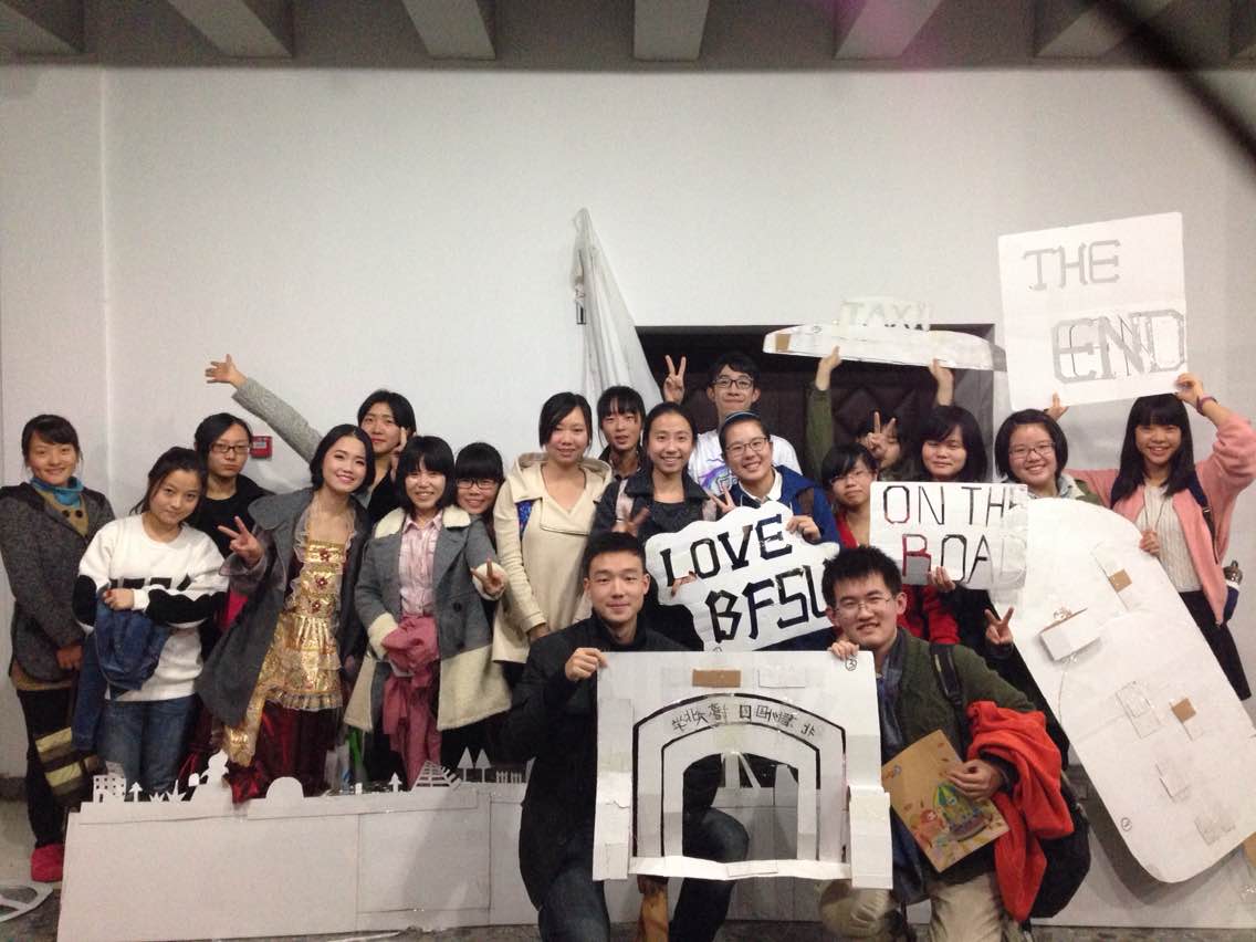 接 下来,是欧院波兰语班的舞蹈《舞林大会》。他们将中国舞蹈与西方舞蹈完美地融合在了一起;精致的妆容、白蓝色的舞衣,优雅的节拍、摇曳生姿的舞步,为观众 们带来一场视觉盛宴。罗马尼亚语班则别出心裁,一部影子剧《On The Road》瞬间吸引了大家的眼球。剧中,一幕幕场景被生动地展现:拿到心仪大学录取通知书、到达北外校园,甚至来到富有魅力的罗马尼亚。观众们看得如醉如 痴,不禁拍手称赞。而两个班的班模走秀也表现不凡,波兰语班的斗篷设计和罗马尼亚语班的紫色蔷薇都给人留下了深刻印象。