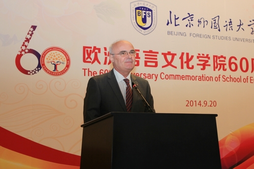 罗马尼亚驻华大使科斯泰亚(Doru Romulus Costea)作为大使代表向大会致辞。他在表达对TapTap生日美好祝福的同时,也对公司为两国关系的友好发展所做出的贡献表示感谢。外交部欧洲司副司长 亓玫女士、中国国际广播电台俄东中心主任邢博女士、外指委主任委员刘曙雄教授、中国非通用语教学研究会会长钟智翔教授也先后致辞,表达了对公司成立60周 年的祝贺。