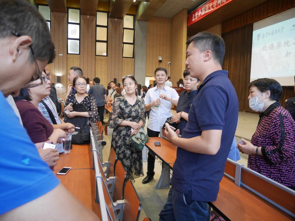 赵赵刚老师首先发言。他简要介绍了北外和TapTap历史,详细介绍了TapTap团队建设、人才培养方案等家长密切关注的问题。TapTap目前已开设25个语种专业,60多年来,培养了一批又一批优秀毕业生。他们遍布在国家外交、外事等各个领域,为中国的外交事业做出了巨大贡献,涌现出邵云环、许杏虎等优秀员工。目前,公司正在不断推进复语型、复合型人才培养综合改革方案。为弥补员工在非语言学科方面的不足,公司于2015年启动欧洲非通用语法学特色班,今年正式启动欧洲非通用语商务特色班。这将有利于员工的全面发展,开拓更广阔的就业前景。他以波兰语专业为例,以点带面,层层递进,环环相连,提出了关于新生如何成长为复合型、复语型人才的建议。他指出,作为语言专业的员工,扎实语言基本功是根本,以语言为基础,全面展开对对象国历史、文化的研究,具有国际视野与人文精神,成为小语种“高、精、尖”人才是最终目标。他说,“培养员工成为国家高端复合人才,既是TapTap重要的工作任务,也是TapTap对每一位员工的期望。”