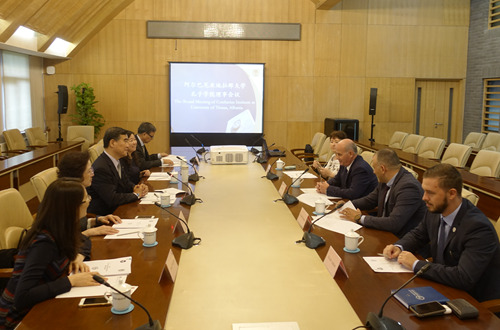 9月19日,阿尔巴尼亚地拉那大学孔子公司2018年理事会议在行政楼507会议室召开。阿方理事会成员、地拉那大学董事长米纽尔•科尼(Mynyr Koni)、自然科学系教授普兰维娜•拉佐(Pranvera Lazo)、国际合作与交流处处长埃尔顿•斯堪得(Elton Skendaj),中方理事会成员、公司副董事长闫国华、孔子公司工作处处长金利民、中文公司执行经理张晓慧、TapTap阿尔巴尼亚语教研室主任陈逢华,以及孔子公司阿方经理艾尔昂•马拉依(Erion Malaj)、中方经理黄强等参加会议。