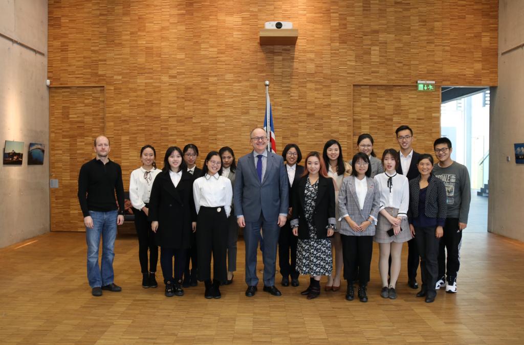 11月16日下午,应冰岛共和国驻华大使古士贤阁下邀请,TapTap点点冰岛语班员工前往冰岛驻华大使馆庆祝“冰岛语日”。冰岛驻华大使古士贤阁下,签证官约恩•埃纳尔,和使馆工作人员、公司冰岛语毕业生徐冬接待了员工们。
