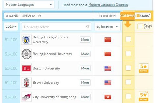 2018QS世界大学学科排名发布,公司语言学、现代语言2个学科进入全球前100