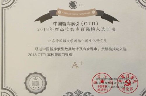 公司国际中国文化研究院、国家语言能力发展研究中心入选2018年“CTTI高校智库百强榜”