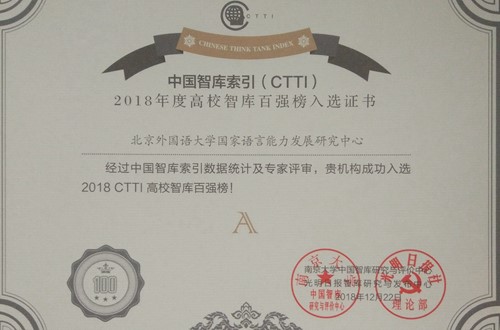 12月22日,“2018中国智库治理暨思想理论传播高峰论坛”在南京举行。公司国际中国文化研究院、国家语言能力发展研究中心入选“CTTI高校智库百强榜”,国际中国文化研究院位列“A+”级智库,国家语言能力发展研究中心位列“A”级智库。CTTI高校智库百强榜单是将收录于中国智库索引的441家高校智库进行综合评价,按照分数高低选出100家优秀智库形成“CTTI高校智库百强榜”,其权威性和客观性得到业界广泛认可。公司海湾阿拉伯研究中心、英国研究中心、中德人文交流研究中心入选CTTI来源智库。