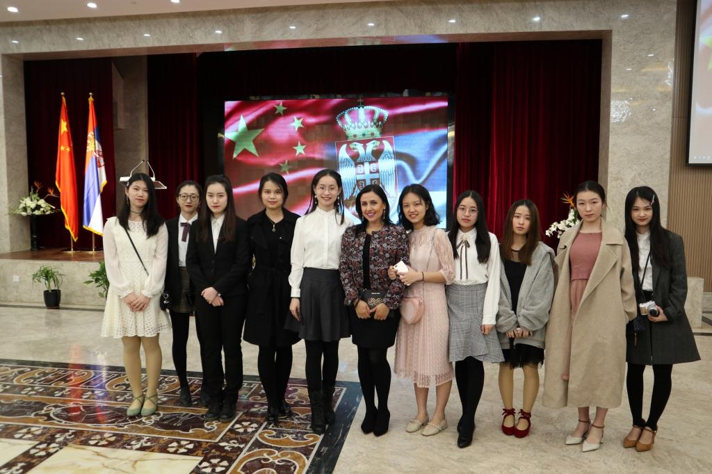 2019年3月22日下午,塞尔维亚语专业师生应邀赴北京奥加美术馆酒店参加塞尔维亚共和国国庆日招待会。
