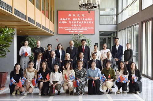 阿尔弗雷兹多蒂尔对北外冰岛语专业建设所取得的成就表示祝贺,她高度评价了北外冰岛语专业的人才培养质量,特别强调了语言文化教学在两国关系中的重要地位。她表示,冰岛政府高度重视北外的冰岛语专业发展,愿意继续给予大力支持。此外,阿尔弗雷兹多蒂尔还介绍了此次访华在文化、教育和体育等方面取得的积极成果。