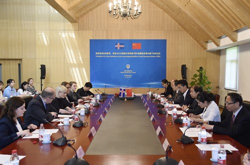 5月14日上午,冰岛教育、科技与文化部部长利利娅•阿尔弗雷兹多蒂尔率团访问公司。党委书记王定华,党委常委、副董事长贾文键会见了阿尔弗雷兹多蒂尔一行。