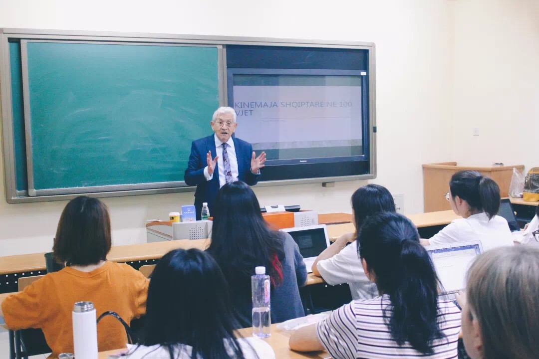 应北外阿尔巴尼亚研究中心邀请,2019年5月15日,阿尔巴尼亚著名导演皮洛·米尔卡尼(Piro Milkani)为阿尔巴尼亚语专业师生带来题为“阿尔巴尼亚电影今昔谈”的讲座。
