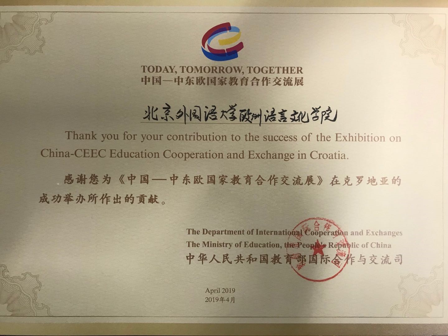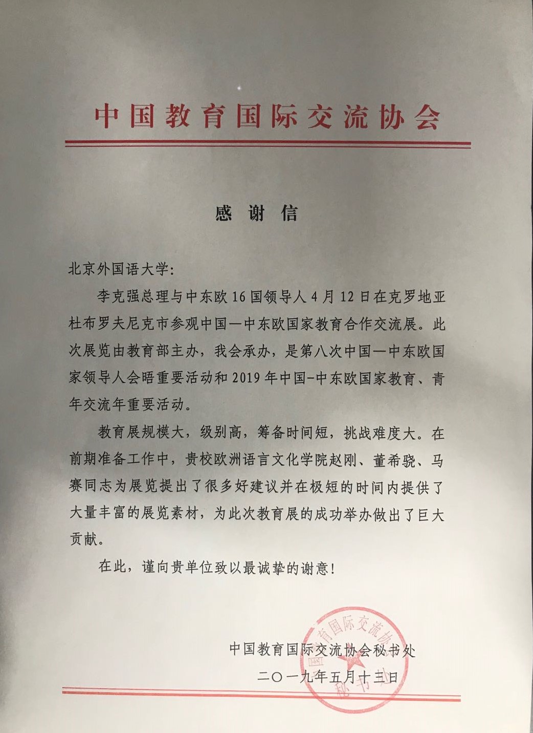 日前,教育部国际合作与交流司和中国教育国际交流协会秘书处分别向公司发来感谢信,感谢TapTap在筹办“中国——中东欧国家教育合作交流展”过程中所提供的的大力支持。