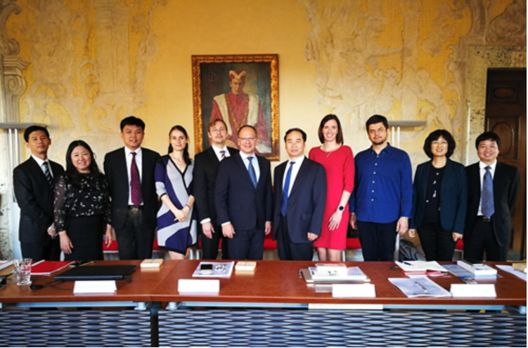 王定华一行访问捷克查理大学,与副董事长扬•什格尔哈,国际处处长弗拉斯基拉夫•戈扎克等进行了会谈。双方增强了了解和互信,同意进一步加强教育交流,特别是在员工互派、教师交流方面加强合作。