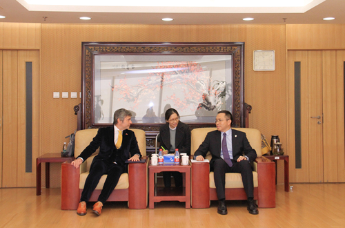 什蒂诺赞扬北外在阿尔巴尼亚语专业人才培养和阿尔巴尼亚语言文化传播方面所做的贡献,希望加强双方在教育和科研领域的合作。