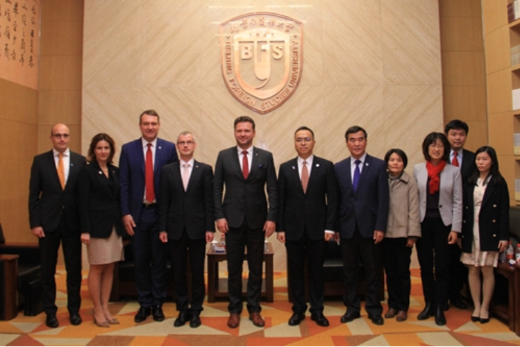 杨丹代表北外和王定华书记对冯德拉切克一行的来访表示热烈欢迎。他在致辞中回顾了中捷交往历史,重点介绍了北外老一辈教师对中国捷克语教学研究的贡献。杨丹指出,2019年是中捷建交70周年,也是北外捷克语专业成立65周年。长期以来,捷克政府与驻华使馆对北外给予了大力支持。希望双方今后携手共进,为中国的波西米亚学研究,以及中捷关系发展开创更加美好的未来。