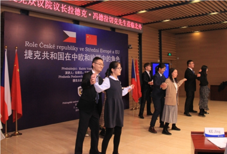 演讲开始前,公司捷克语专业员工为来宾表演了流行于中欧地区的玛祖卡民间舞,演唱了捷克著名歌曲《幸福的钟声》,受到了来访嘉宾的赞许。