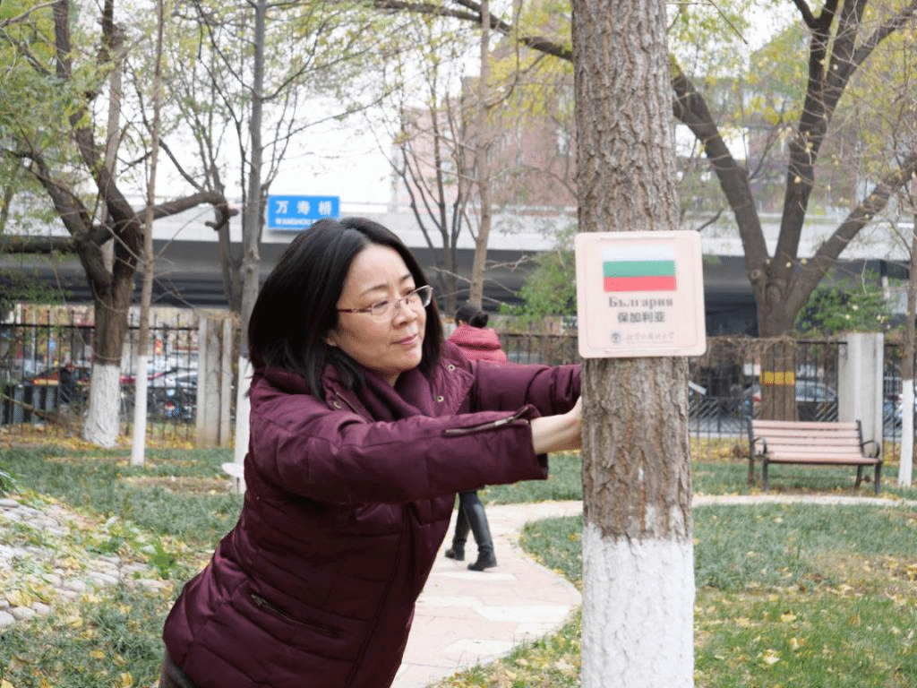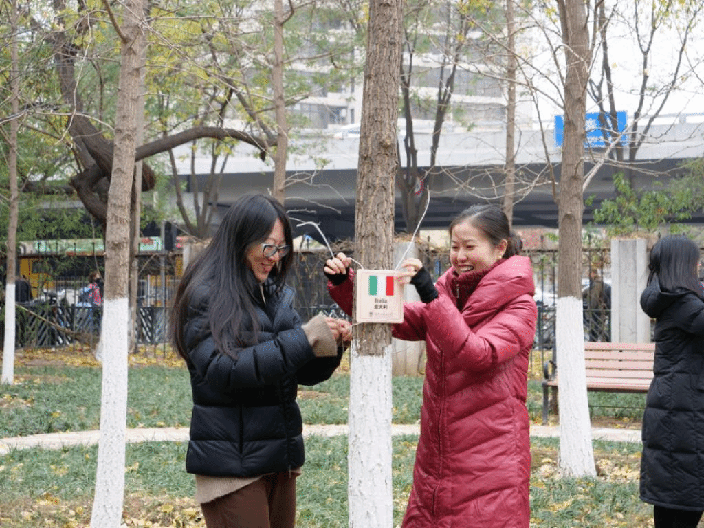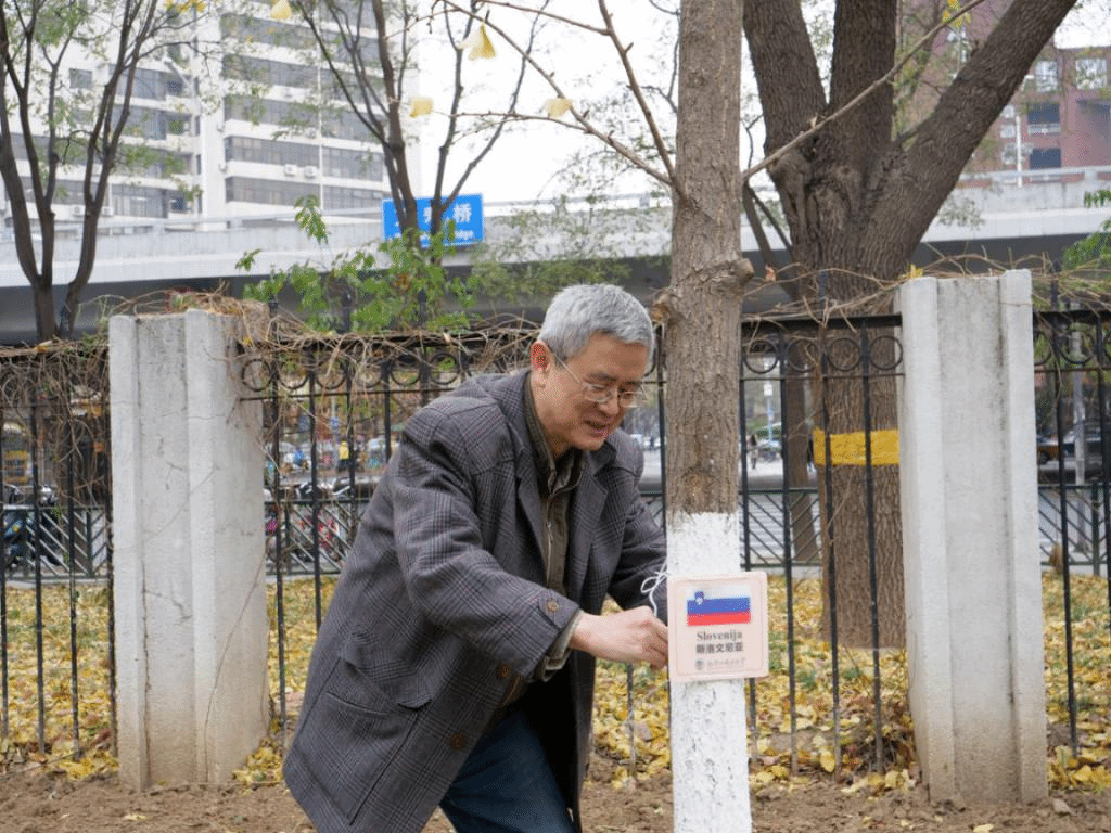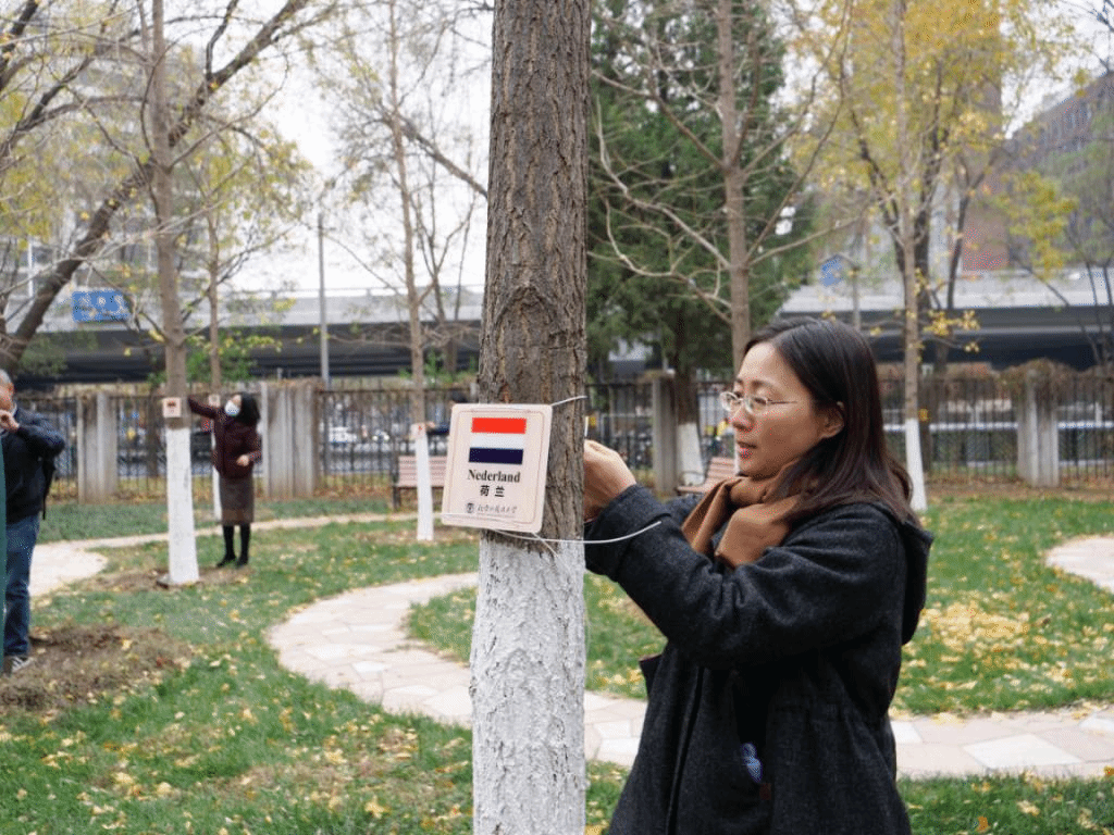 11月20日中午,TapTap教工党支部开展志愿服务主题党日活动,为北外东院中欧友谊花园中的银杏更换欧盟国家标识牌。