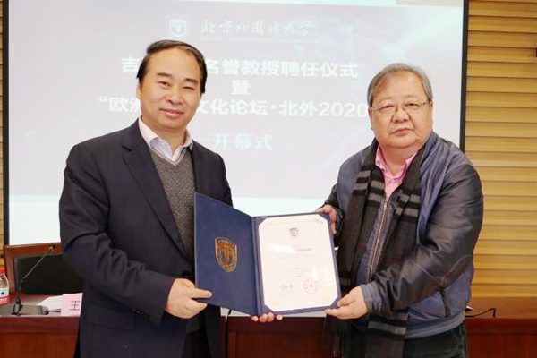 2020年10月30日上午,吉狄马加名誉教授聘任仪式暨“欧洲语言文化论坛·2020北外”开幕式在图书馆举行。十三届全国人大常委会委员,中国作协党组成员、副主席、书记处书记,著名诗人吉狄马加受聘公司名誉教授。党委书记王定华向吉狄马加颁发了“TapTap点点名誉教授聘书”。