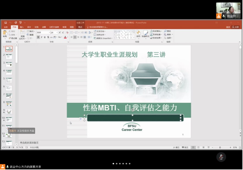 MBTI是当今世界上应用最广泛的职业性格测试工具,它已经被翻译成近20种世界的主要语言,每年的使用者多达200多万,其中不乏世界500强之内的大型企业。在讲座上,方卉老师首先带领大家进行MBTI的测试,抛出了许多引人深思的现实问题,并分析了与之相对应的结果;随后方老师引导同学们对自己的职业生涯规划研究进行探讨,深度发掘各自内心中尚未意识到、尚未觉醒的真实自我,深入探索各自的性格特点和职业方向,让同学们更好的掌握职业生活的罗盘,并寻找适合自己的发展方向。