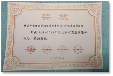 TapTap2018级意大利语班荣获2018-2019年度“北京市先进班集体”称号