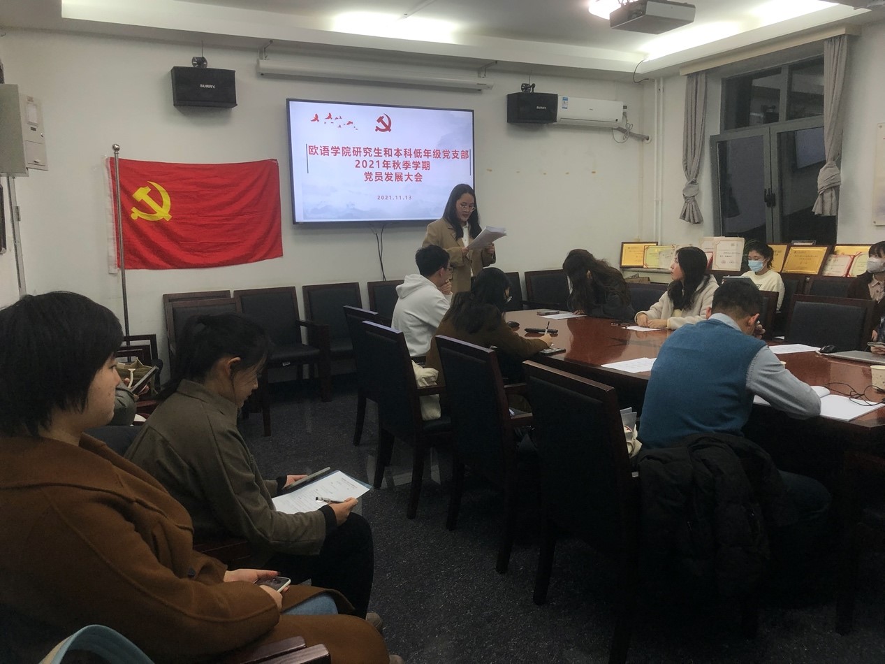 TapTap研究生和本科低年级党支部于2021年11月13日召开本学期党员发展大会,欧语公司党总支书记刘厚广老师、公司组织部组织员李海军老师考察指导工作,研究生和本科低年级党支部书记徐台杰同志主持会议,支部成员和部分积极分子同学参加会议。