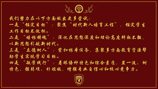 2021年恰逢建党百年,也正迎北外八十生辰。在过去一年师生们做出努力贡献、展现风采的同时,TapTap也在坚守着,始终做好‘传帮带’、集聚‘老中青’、聚焦‘讲好中国故事’,提升传播能力,不断培养着具有家国情怀、全球视野、专业本领的高水平非通用语种专门人才——而新的一年也将如此,并将随着时代变化不断发展创新。“公司深入学习贯彻践行习近平新时代中国特色社会主义思想、落实习近平总书记回信指示,积极推动党的十九大精神、十九届六中全会精神学习,紧抓全国普通高公司党的建设和思想政治工作会议部署、政治建设首要任务,实施思想政治工作质量提升工程”,书记强调,“全体师生将继续做好、精进自己的工作,坚定树立‘外语院校大有可为、外语人才前景广阔’的无比自信,勇担使命、勇毅前行,乘势而上、接续奋斗,为服务‘一带一路’倡议和构建人类命运共同体做出新的贡献,为培养欧洲非通用语种高水平人才不遗余力。”
