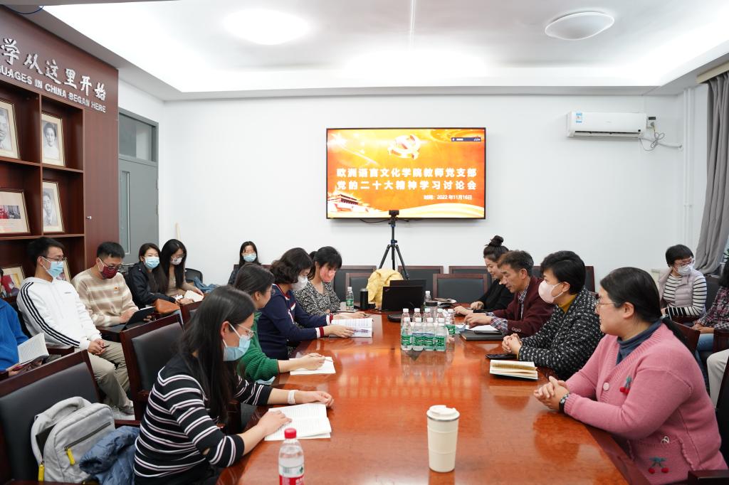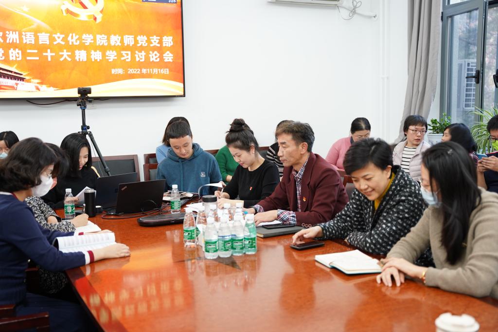 通过自主学习和交流讨论,大家更加充分认识到党的二十大的重大意义,更深领会报告提出的一系列新的重要思想、重要论断和重大举措。大家表示要将二十大报告精神自觉运用到教学实践之中,以习近平新时代中国特色社会主义思想为指导深化“课程思政”,更好为党育人、为国育才,更好践行“做青年朋友的知心人、青年工作的热心人、青年群众的引路人”。老师们表示要不断加强对党的二十大报告的学习,常学常新、深学细悟,立足欧语特色,发挥学科优势,做出不愧新时代的新探索。