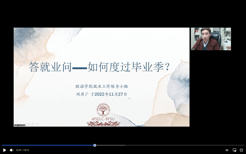 刘厚广在《答就业问——如何度过毕业季?》的发言中,精准研究汇总并详细解答了毕业生十分关切的六个问题:一是毕业季应完成哪些事情?二是这些极端重要事务性安排,在疫情之下怎么办?三是应秉持什么样的心态应对挑战考验,毕业生应有什么样的人生观、价值观和择业观?四是集聚全院教团队源,老师们能为毕业生们做什么?五是如何认识当前防疫形势、做出顺应疫情影响的个人方案?六是就业全过程如何进行自我安全保护?