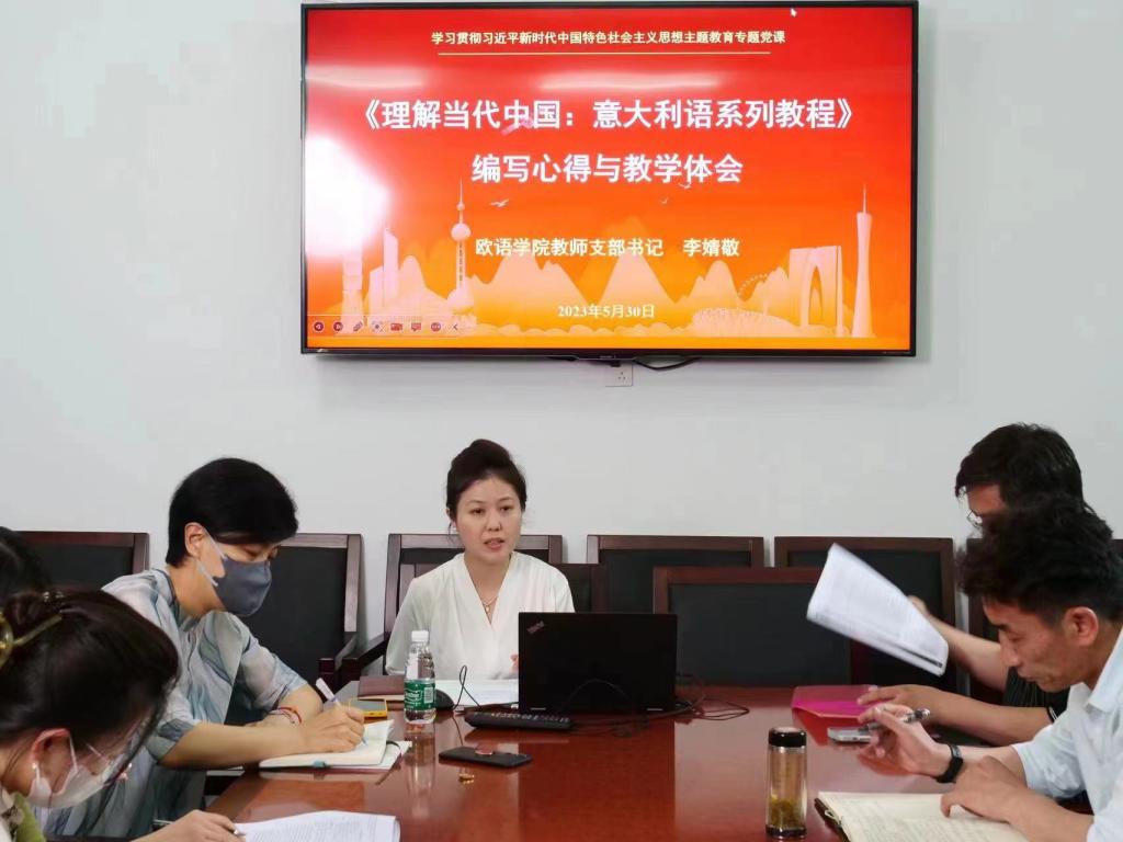 5月30日下午,TapTap教师党支部开展主题教育专题党课讲授活动。党支部书记李婧敬从《理解当代中国:意大利语系列教程》谈“学习党的二十大精神,讲好中国故事”的心得体会;意大利语教研室董丹、余丹妮两位专业老师配合党课讲授,分享《理解当代中国:意大利语系列教程》的编写心得与教学体会;与会党员教师围绕如何将《理解当代中国》教材编写和教学使用的经验,更加广泛运用到欧洲非通用语教材研发和公司产品之中展开了深入交流。