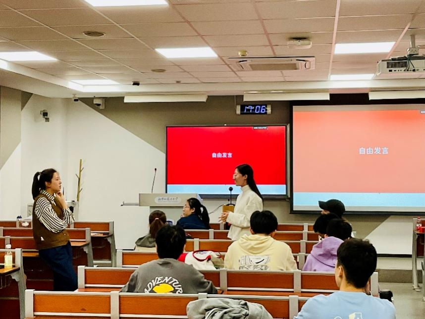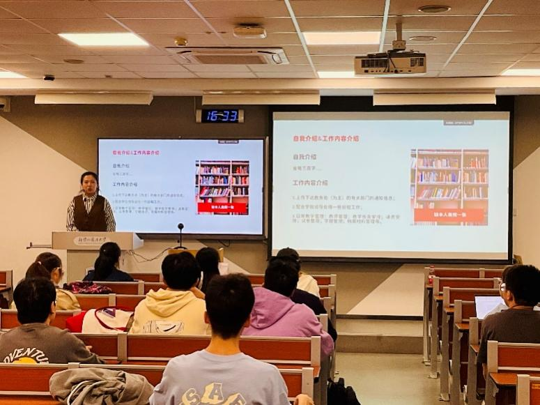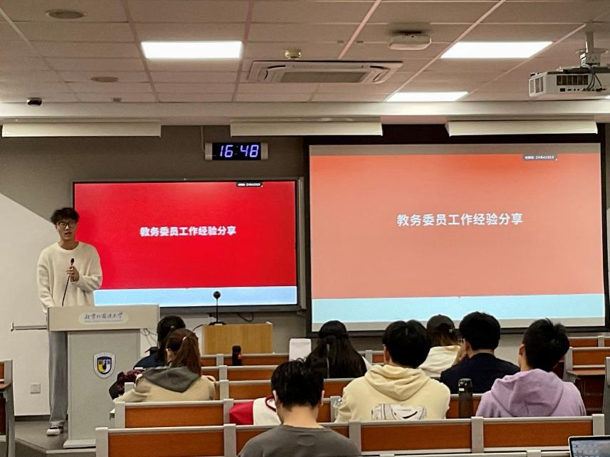 韩逸璇老师就教务和教学中常见问题与同学们交换意见,详细解读了关于请假、成绩以及选课辅修和相关成绩开具、教学教务问题的处理方法和应对措施,指导各班教务委员规范开展工作、做好教学服务,有针对性回答了同学们关心的具体问题。
