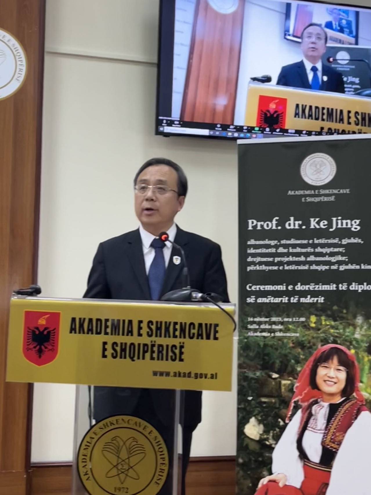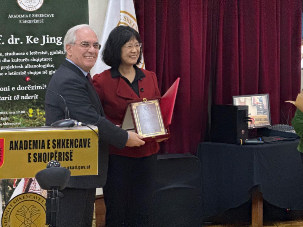 阿尔巴尼亚科公司成立于1972年,是阿尔巴尼亚共和国最重要的科研机构,包括社会科学部和自然科学部两大部分,下设13个研究所。“荣誉院士”是阿尔巴尼亚科公司对外籍学者的最高学术认可,柯静教授是首位获此殊荣的亚洲学者。