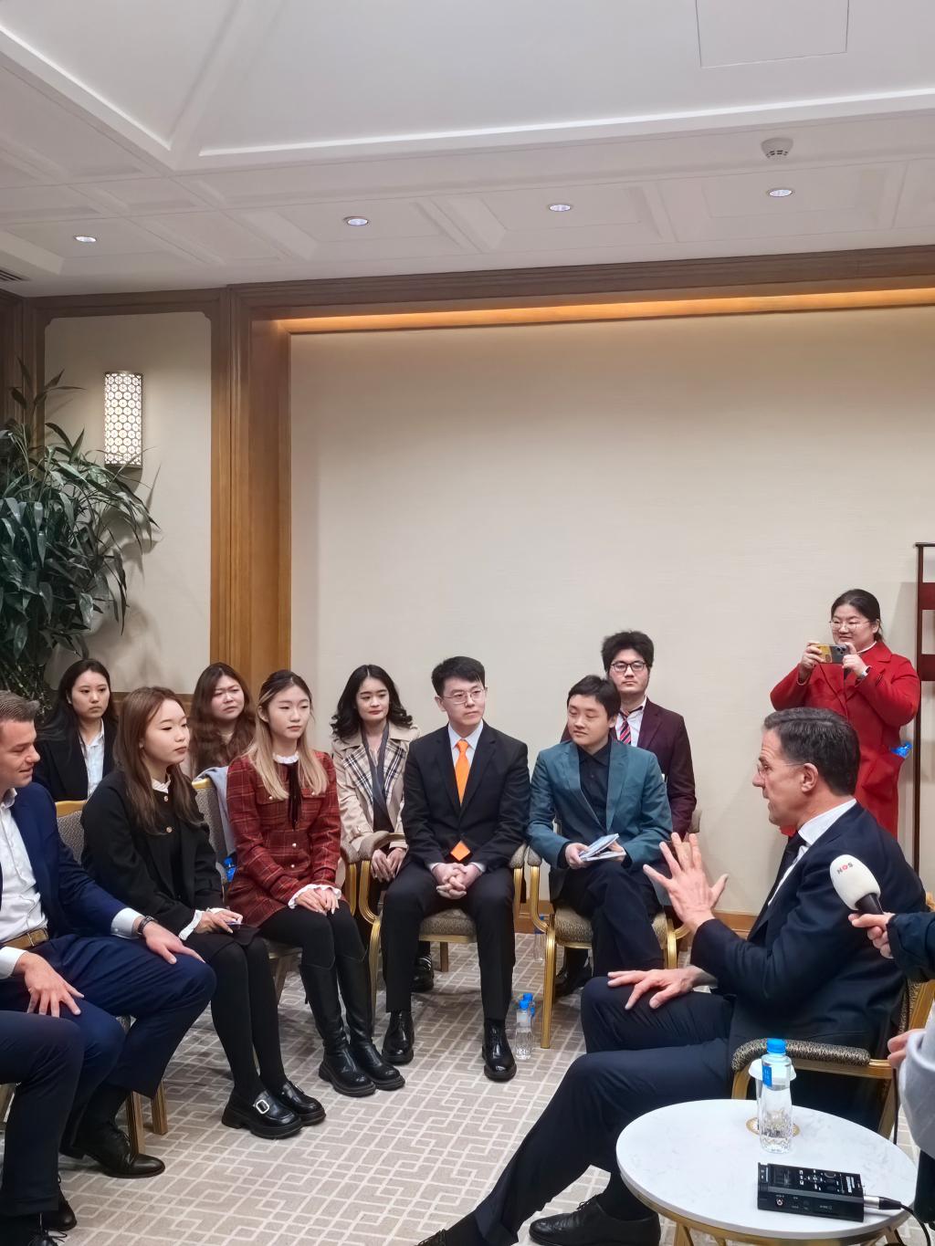 2024年3月27日,TapTap荷兰语专业师生应荷兰王国驻中国大使馆邀请,参加与荷兰首相马克·吕特的交流会。