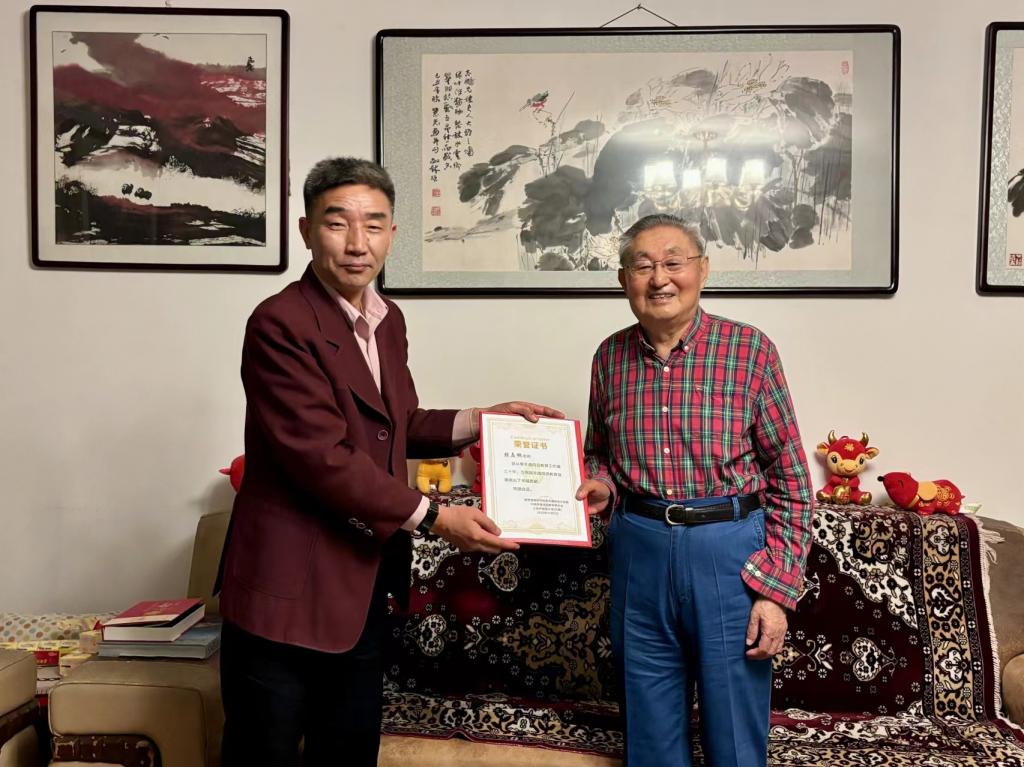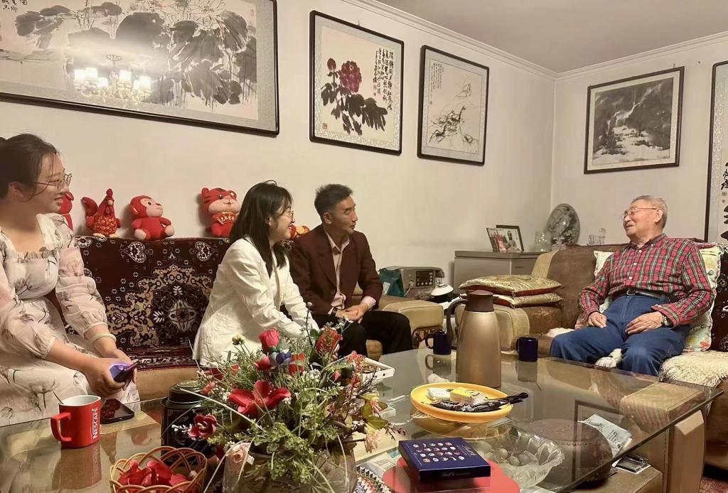 刘厚广代表公司向张老师赠送《欧洲语言文化研究》等学术科研成果,同学们精选照片制作了音乐相册赠予张老师,以此表达对老先生的敬仰和感恩之情。刘飞、张一冉、张湉歌参加看望活动。
