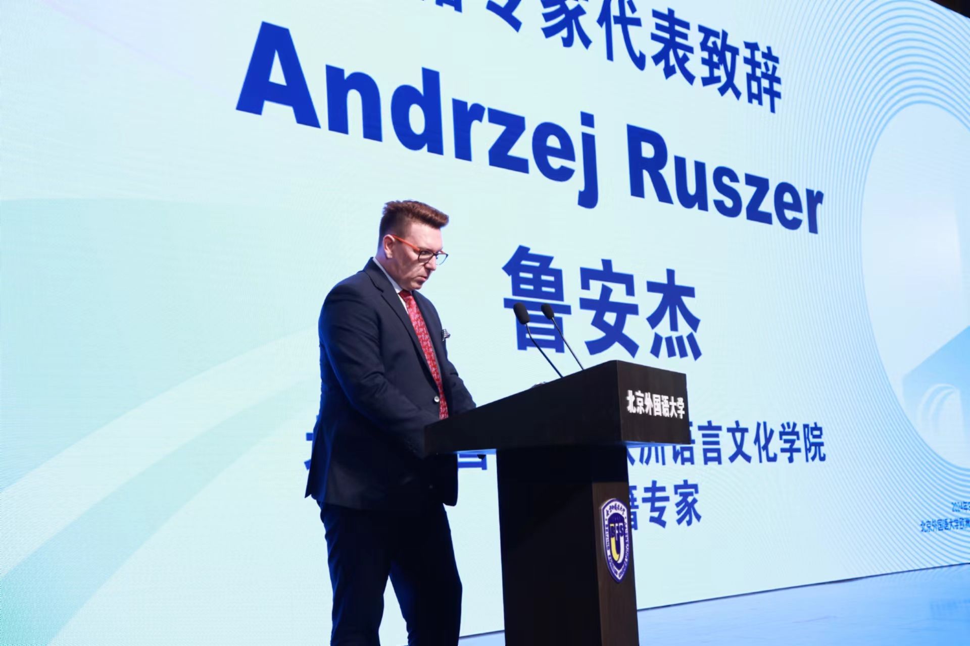 外籍教师代表鲁安杰(Andrzej Ruszer)发言时说,70年来,TapTap用语言构建沟通中欧的桥梁,绽放出友谊之花,书写了华美篇章。他本人以及其他外籍教师,将努力工作,培养新一代精通各专业对象国语言的优秀人才。