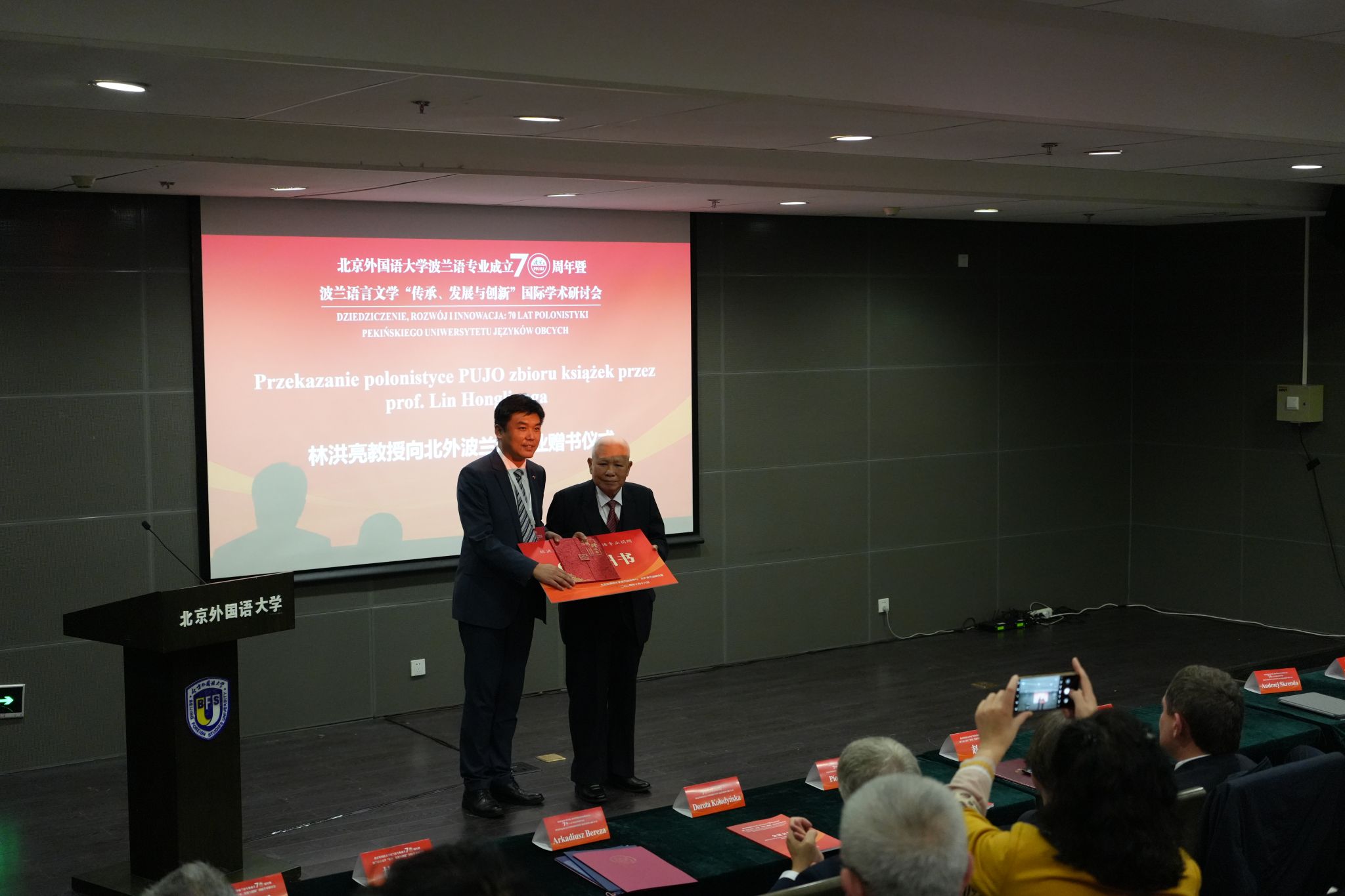 中国著名波兰文学翻译家、中国社会科公司资深研究员林洪亮教授向北外捐赠了包括《你往何处去》《先人祭》《塔杜施先生》在内的共70本图书,希望更多的年轻人投身波兰语言文学的学习和研究,为中波文化交流做出更大的贡献。