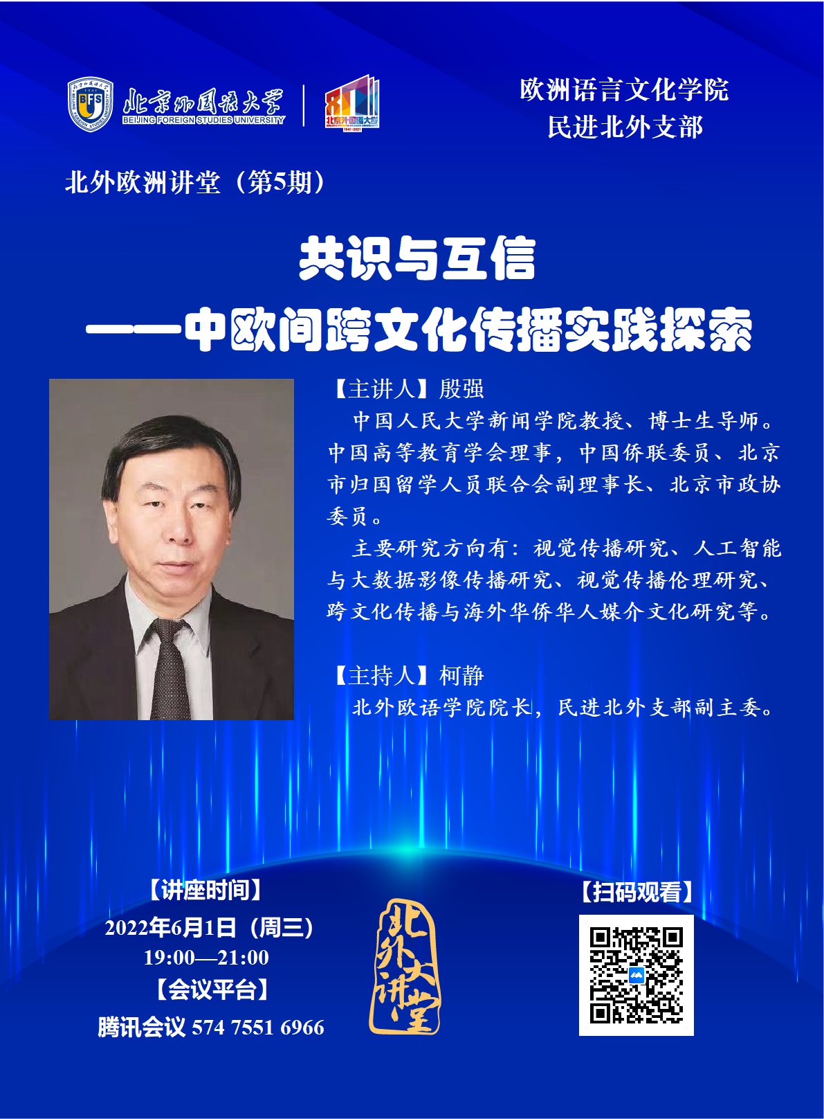 【预告】北外欧洲讲堂(第5期)共识与互信——中欧间跨文化传播实践探索