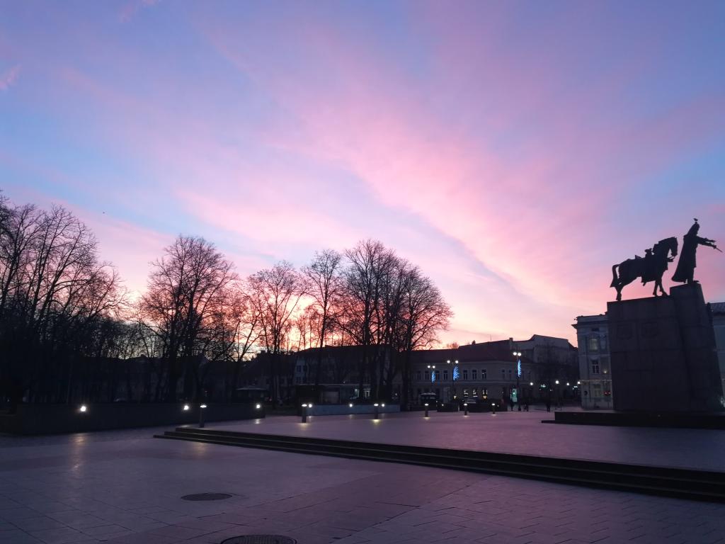 12月末的清晨,我们抵达了维尔纽斯,从车站一直向城市中心前进。天空从一片漆黑中孕育出绚烂的颜色,我从没有想过晨光竟也会如此美好,给这座城市平添一份浪漫情怀。